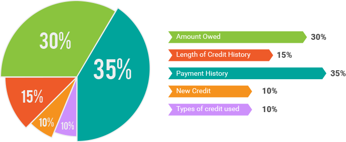 This chart, from myFICO.com, shows how the FICO score is calculated:
